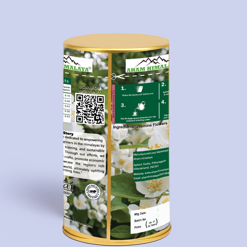 Indulge in the pristine purity of nature with AHAM HIMALAYA Jasmine Tea, sourced directly from the serene valleys of the Himalayas. This is more than just tea—it's a natural ritual crafted to support a slimmer body and provide essential stress relief.