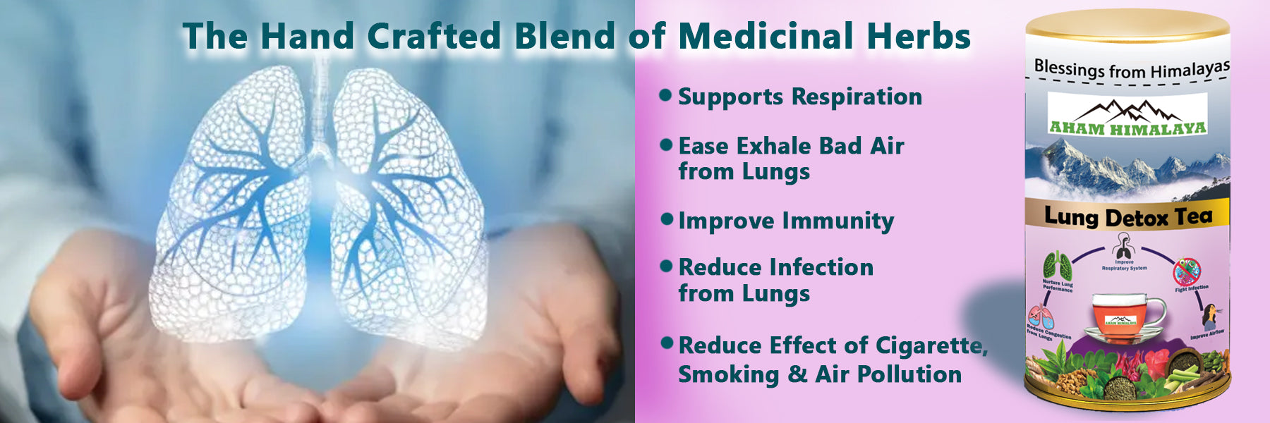 Aham Himalaya Lungs Detox Tea is a carefully crafted lungs cleanses herbal tea made with powerful Ayurvedic herbs like tulsi, amla, ashwagandha, and arjun